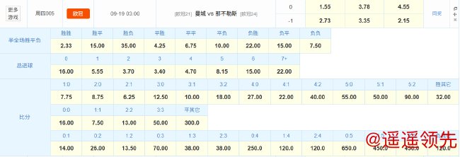 竞彩官方给本场欧冠焦点战开出1.55(曼城胜)、3.78(平局)、4.55(那不勒斯胜)的胜平负组合,对于连续主场作战的曼城给予实力倾向。比分竞猜玩法,曼城2-1赢球最低为1赔6.25,双方1-1战平为1赔7.5,曼城1-0、2-0赢球分别为1赔7.75和1赔8.75。结合半全场胜平负竞猜玩法,“胜胜”最低1赔2.33和“平胜”1赔4.25来看BETWAY必威,那不勒斯想要克服客场面对英格兰俱乐部不胜的心理魔咒任重而道远,本场更看好曼城取得欧冠开门红。(雪莉)